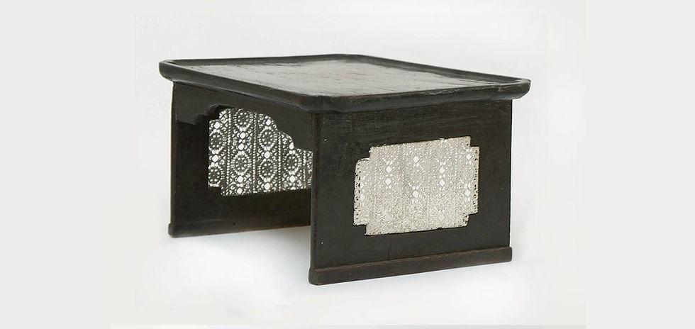 Delicate lacework in silver and brass is harmoniously layered onto trays once used in early 1900s Korea, giving them new life. This process quietly reimagines discarded beauty from the past, infusing it with a contemporary sensibility and transforming it into a luminous, modern object of presence.